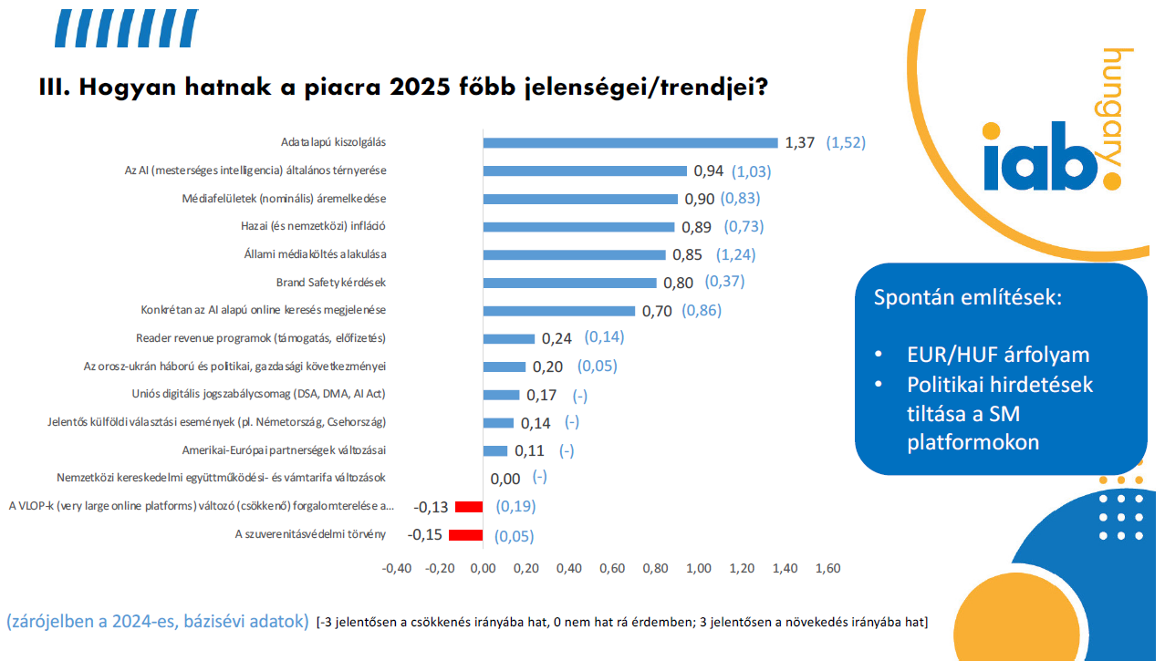 Az önbevalláson alapuló riport elkészítésében az IAB Hungary munkáját a PwC Magyarország, a MAKSZ és a Neticle segítette. Novák Péter szerint 2024-ben még a gyenge GDP mellett is csökkent az infláció és nőtt a fogyasztás, ami jót tett az iparágnak. Emellett kiemelt még néhány fontos trendet is: