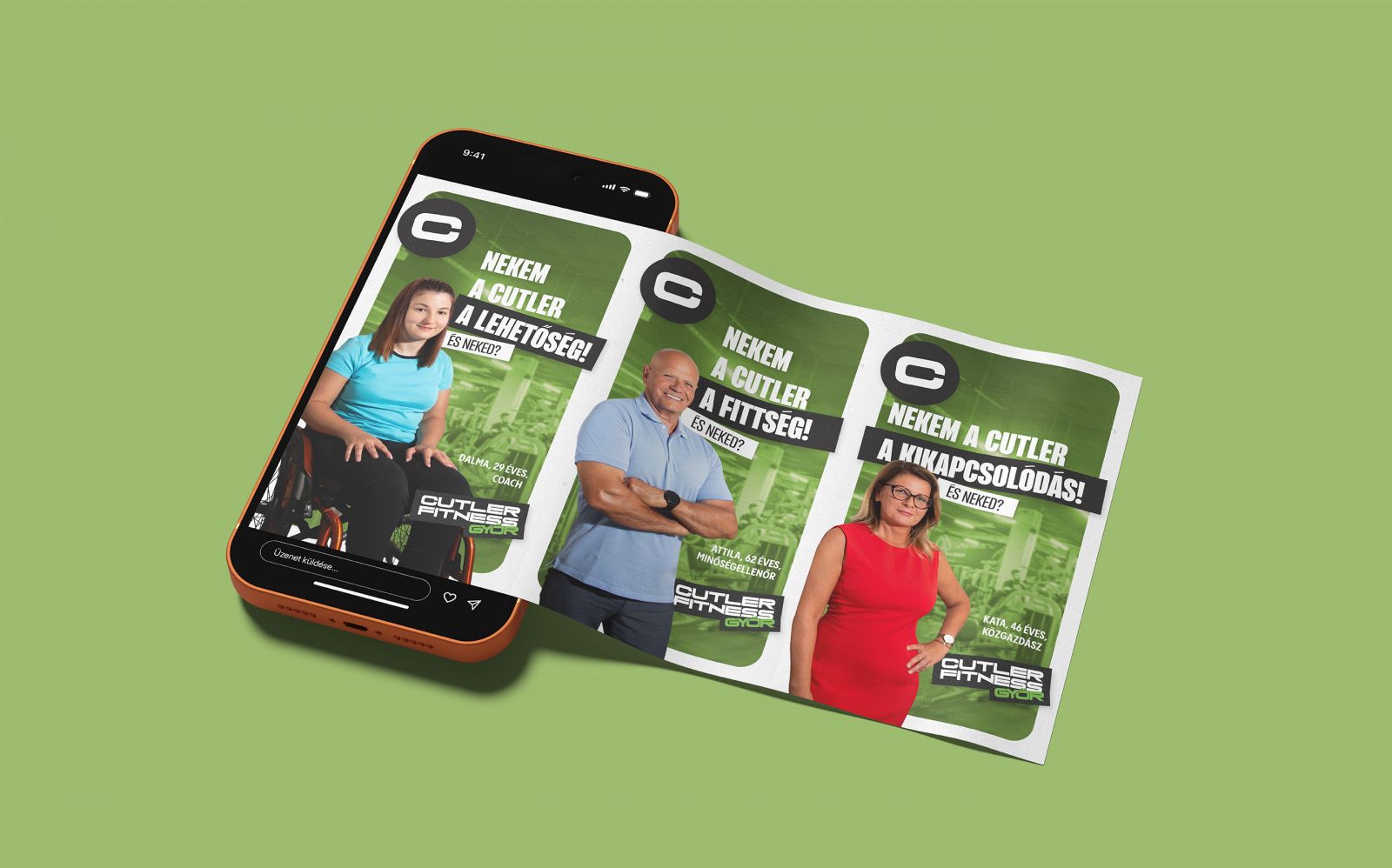 A „Nekem a Cutler” kampányszlogenben az első pillanattól megvolt az az erő, amire szükség volt ehhez a projekthez. A kifejező, közérthető és könnyen személyre szabható szöveg minden szereplő esetében az egyéni megélést tükrözte. A karakterek valóban a saját benyomásaikat osztották meg arról, hogy nekik mit jelent a Cutlerben edzeni. Például a professzionális sportoló esetében a copy a következőképp alakult: „Nekem a Cutler a profi háttér!”, míg a mozgássérült egyetemista a következőt emelte ki: „Nekem a Cutler a lehetőség!”