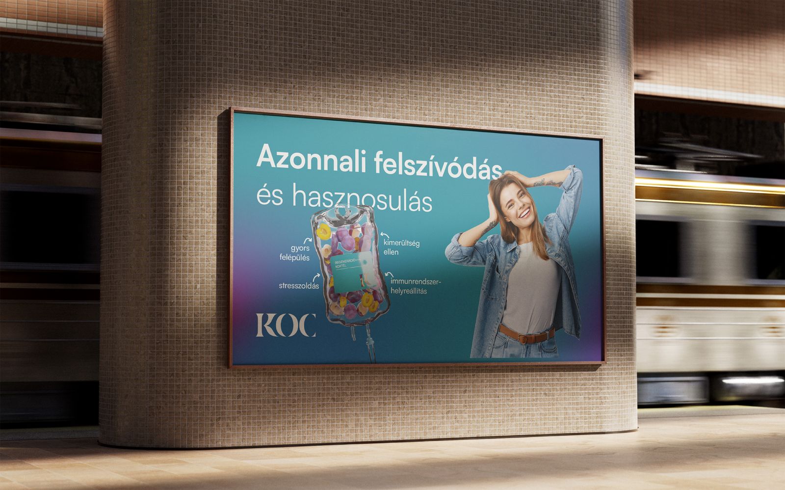 A projekt célja a Körúti Orvosi Centrum új szolgáltatása, az Infúzióbár bevezetése volt. Ez az innovatív egészségtámogató módszer lehetőséget nyújt az intravénás vitaminpótlásra, amellyel célzottan kezelhetők a hiány állapotok és hatékonyan kiegészíthető az étrend. Az infúziós kezelésekkel kapcsolatos negatív és távolságtartó percepciók azonban extra kihívást jelentettek a megvalósításban. Így nem csak a sikeres bevezetés, hanem a tudatos újrapozicionálás is feladat volt, melynek nyomán az infúziós kezelések könnyedebb, pozitívabb kontextust kaptak.