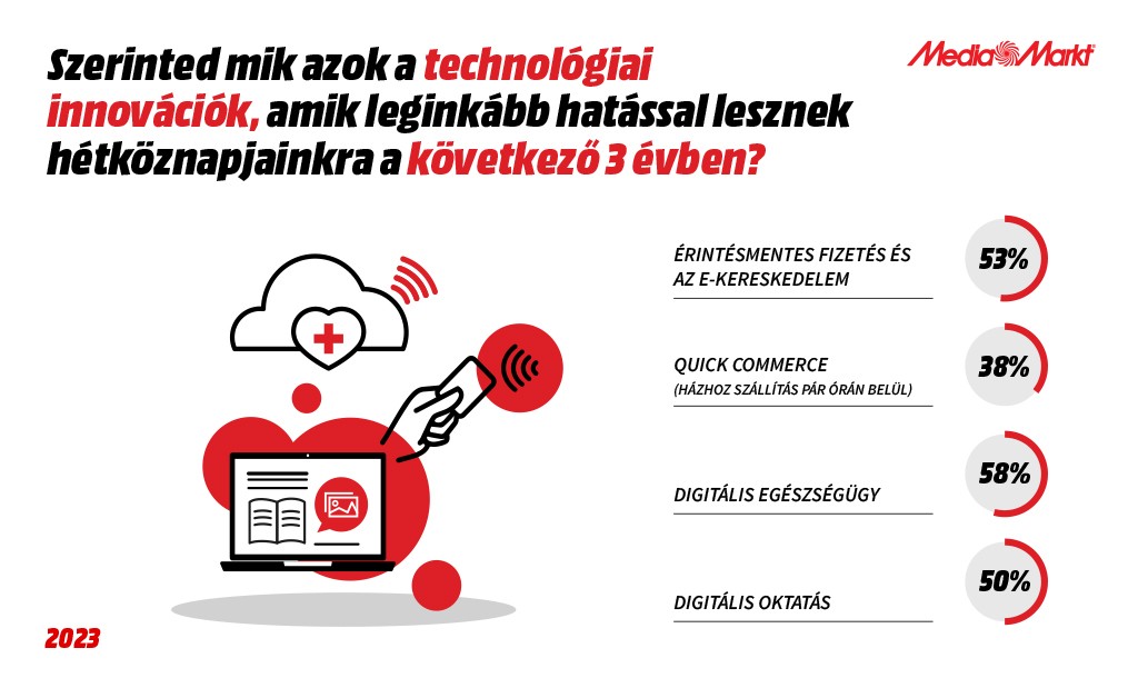 A felmérésben résztvevők egyértelműen arra számítanak, hogy újabb területeken várható technológiai fejlődési ugrás az elkövetkező években: 53% úgy véli, hogy az érintésmentes fizetés és az e-kereskedelem lesz a legfontosabb innováció a következő 3 évben, a digitális egészségügy területén a válaszadók 58%-a, 50% pedig az online oktatásban számít erre az ugrásra. A Quick commerce-t, azaz az online rendelt termékek pár órás kiszállítás elterjedését is sokan, a megkérdezettek 38%-a jósolja.