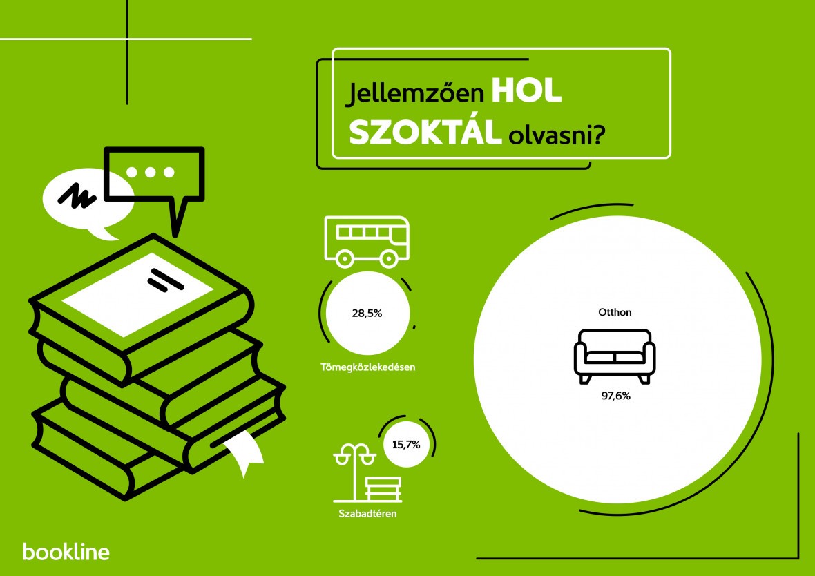 Az olvasási körülményekre is választ kaptunk, továbbra is a nyomtatott könyvek viszik a prímet, a kitöltők szinte kivétel nélkül nyomtatott formában fogyasztja az irodalmat, harmaduk olvas e-book-olvasón, 14 százalékuk okoseszközön, kis hányaduk hallgat (6%) hangoskönyvet. Mindezen kulturális tevékenységet leginkább este, és otthon végzik az olvasás szerelmesei.