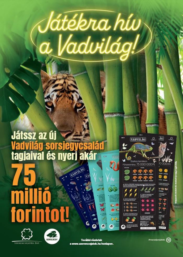 A Magyar Marketing Szövetség vállalati tagja, a Szerencsejáték Zrt. új, holografikusan csillogó sorsjegycsaláddal bővíti termékportfólióját. A nemzeti lottótársaság által végzett kutatásból kiderült, hogy a játékosok 70%-a szeret állatos sorsjegyekkel játszani, továbbá, ha a szerencsevadászok választhatnak az adott sorsjegycsaládok tematikája között, akkor az állatvilág a legnépszerűbb a válaszadók között. A társaság ezekre az igényekre alapozva állította össze az új Vadvilág sorsjegycsalád egyes sorsjegyein megjelenő játékait, így árkategóriától függően 2+1, 4+1, valamint 6+1 típusú játékot is kínál.