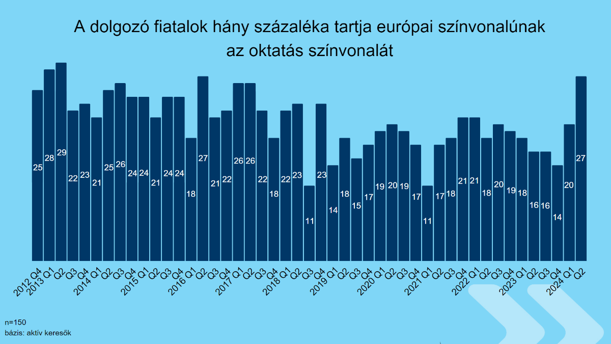 A dolgozó fiatalok 27 százaléka formált kifejezetten vagy inkább jó véleményt a magyar oktatásról, ami viszont magas érték az elmúlt évek adataival összehasonlítva: legutóbb 2016–2017-ben mértek ilyen jó adatot. Ez megelőzően a 2010-es évek elején áll az idei második negyedévihez hasonló szinten ez a mutató. A válaszadók 18 százaléka alá csökkent azoknak az aránya, akik inkább rossz véleménnyel vannak az oktatásról, mint jóval. Ugyanakkor ahhoz még kevesek az adatok, hogy trendszerű változásról beszélhessünk ezen a téren.