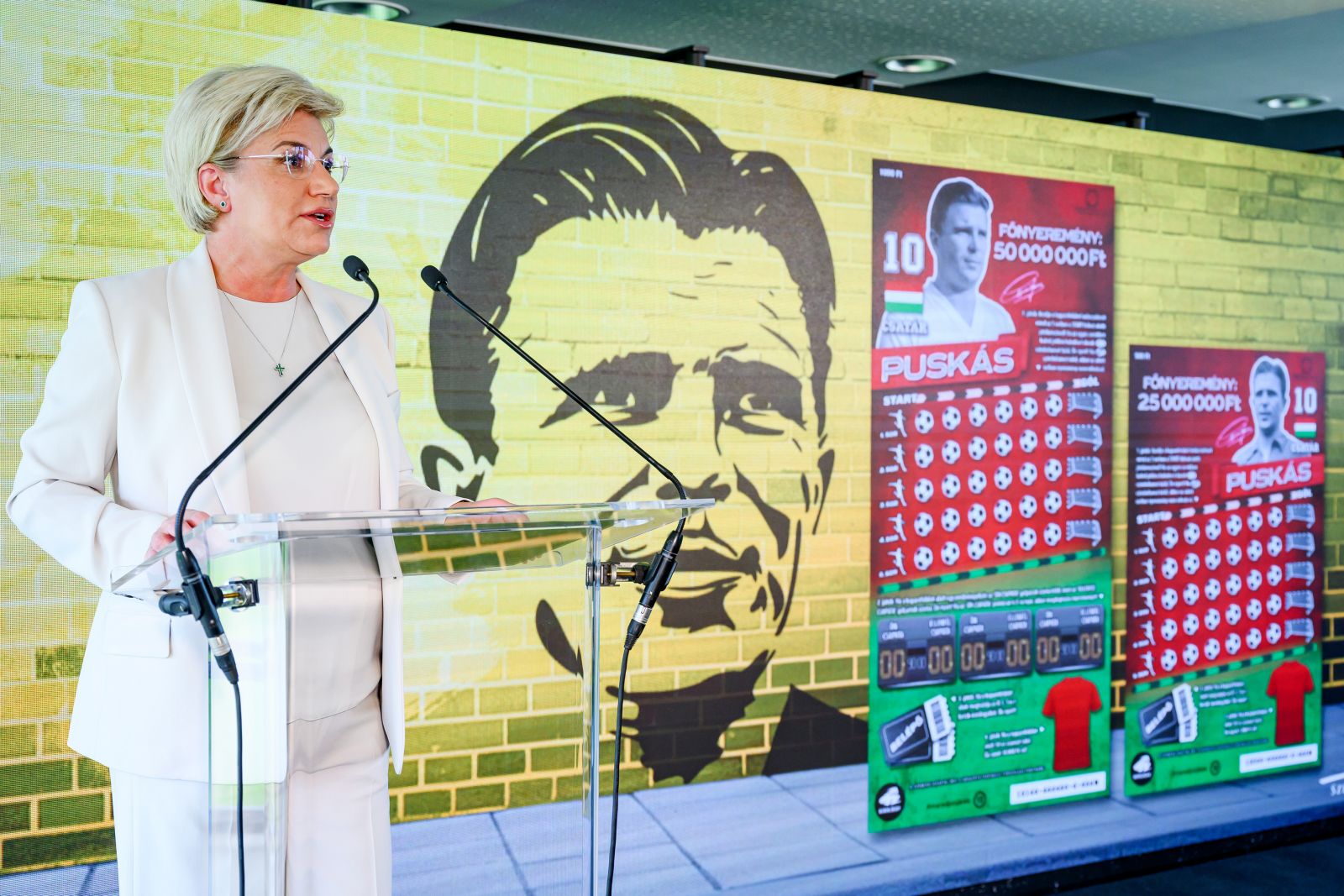 "14 éve nem volt sport, illetve foci tematikájú sorsjegyünk” – mondta a Szerencsejáték Zrt. elnök-vezérigazgatója a labdarúgó legenda szülőházához közeli, kispesti Bozsik Arénában tartott ünnepélyes sajtótájékoztatón. Mager Andrea kiemelte, „a Puskás sorsjegyek valódi értékét az adja, hogy megjelentetésükkel egy olyan világhírű nemzeti sportoló személye és munkássága előtt tiszteleghetünk, aki alapjaiban határozta meg a magyar labdarúgást, egyszersmind növelve annak nemzetközi presztízsét”. Mint kifejtette, a társaság számára fontos volt, hogy az új termék méltó módon elevenítse meg a sportikon alakját, ezért olyan különleges kivitelezési formát és grafikai megoldásokat választottak, amelyek vizuálisan is közvetítik az üzenetet, miszerint „a legenda bennünk él”.