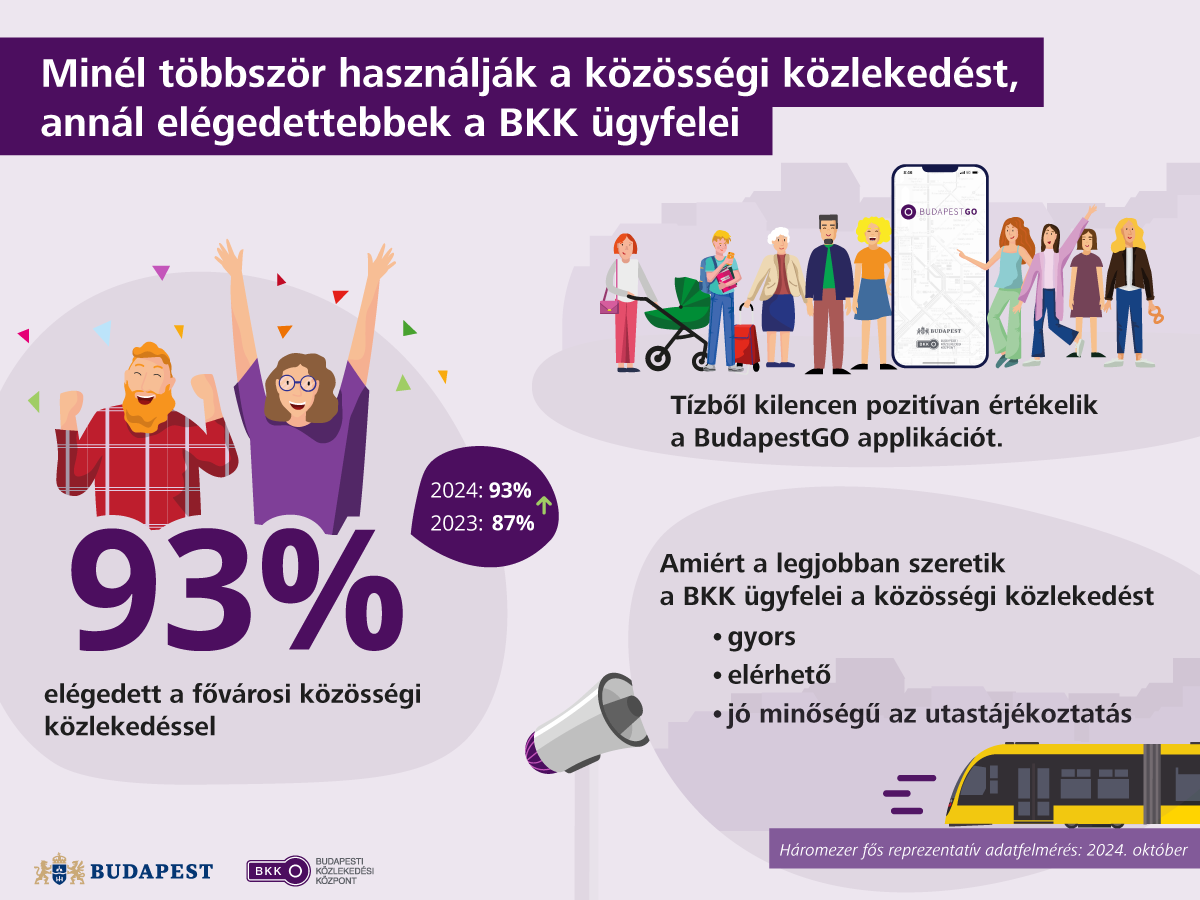 A megkérdezettek leginkább a BKK szolgáltatásának gyorsaságát (95%), elérhetőségét (93%) – tehát azt, hogy a társaság járatainak és szolgáltatásainak jó a hozzáférhetősége –, valamint az utastájékoztatás minőségét (92%) értékelték a legpozitívabban. Az előző évhez képest – vélhetően a tavaly márciusban bevezetett tarifarendszernek köszönhetően – az árszínvonallal való elégedettség is emelkedett, és jelentős javulás látszik a gyorsaságra (plusz 4 százalék) és a komfortra (plusz 4 százalék) vonatkozó elégedettségben is.
