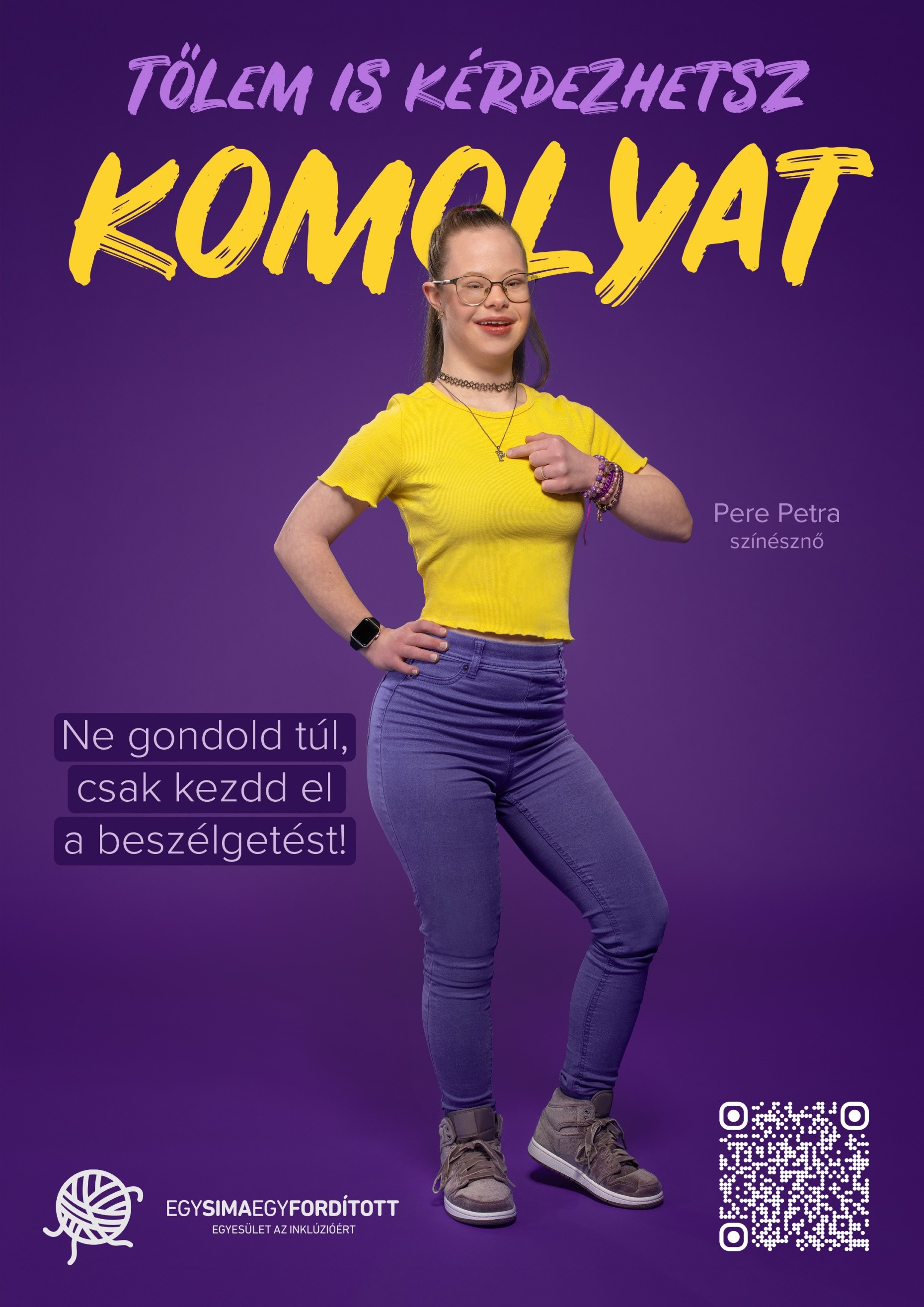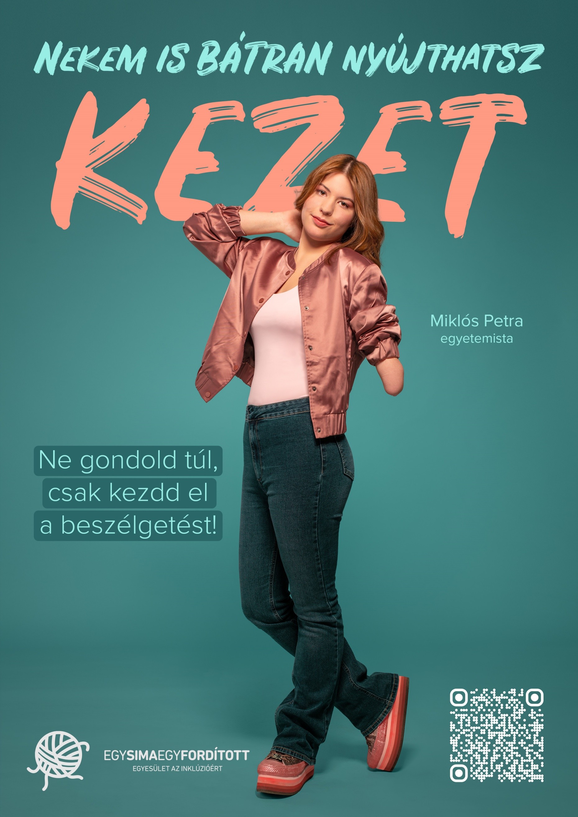 „Nagyon fontos volt számunkra, hogy a kampány hangvétele könnyed, humoros és pozitív legyen, és elmozduljunk az eddig megszokott üzenetektől. Bátorítani szeretnénk az embereket, hogy ne féljenek párbeszédet kezdeményezni fogyatékossággal élő emberekkel” – mondja Török Flóra, aki az egyesület egyik alapítója és operatív vezetője.