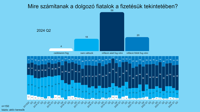 Az első 2013-tól 2016-ig tartott, amikor a fizetésük inflációnál kisebb emelkedését várók aránya a valamivel 30 százalék alatti szintről 40 százalék fölé nőtt. Ezzel ellentétesen hullámzott a keresetük változatlanságával számolók aránya. A fizetésük csökkenését a dolgozó fiatalok 8-10 százaléka várta, míg infláció feletti növekedésre 15-20 százalékuk számított.