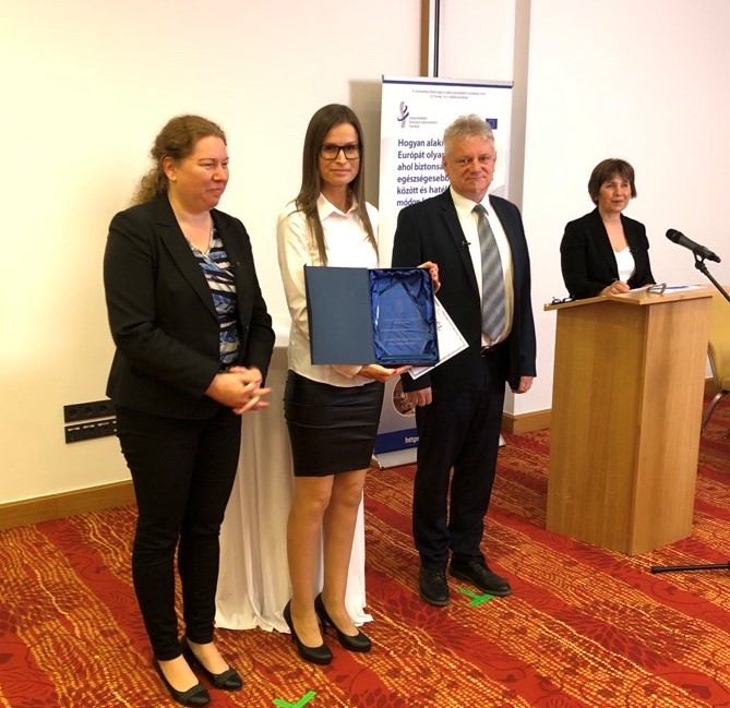 A „Biztonságos munkahely” elismerésért járó díjat Tóth Erika, a Henkel körösladányi ügyvezető gyárigazgatója vette át az Innovációs és Technológiai Minisztérium Munkavédelmi Irányítási Főosztály EU-OSHA Nemzeti Fókuszpontja által szervezett „Fejlesztési irányok és irányított fejlesztések – új perspektívák a munkavédelem területén” címen megrendezett online konferencián.