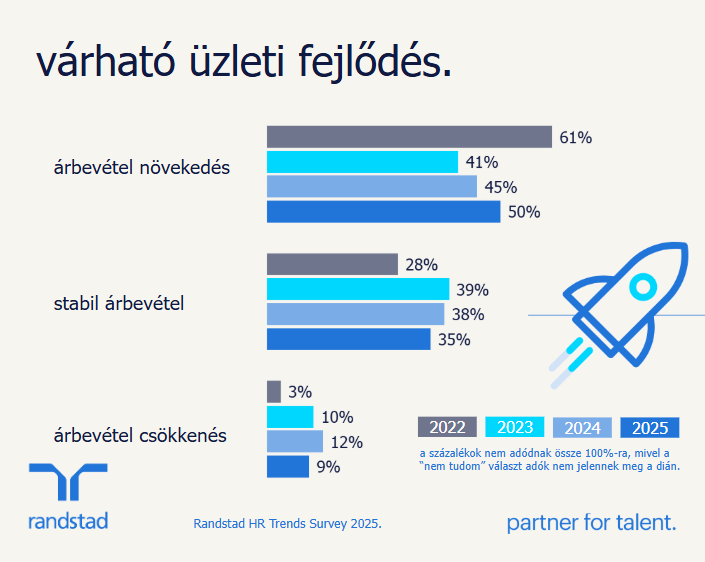 A Randstad a legfrissebb kutatásában felmérte a 2025-ös üzleti év várakozásait és a Magyarországon működő cégek legjelentősebb HR-kihívásait. A közel 400 hazai vállalati döntéshozó körében végzett felmérésből kiderül, hogy