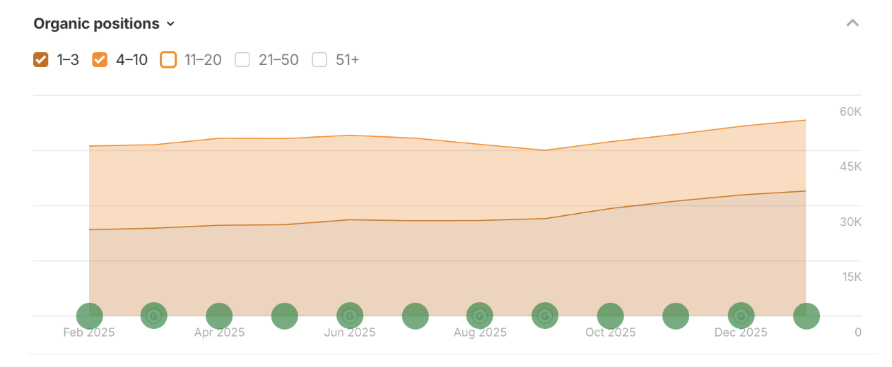 Az egyik leglátványosabb eredmény az organikus forgalom alakulásában látható: míg a projekt indulásakor, 2019-ben a weboldal havi látogatottsága még körülbelül 500 000 volt, addig 2025-re az éves organikus forgalom elérte a 23,5 millió látogatót, ami átlagosan több mint 2 millió látogatót jelent havonta.