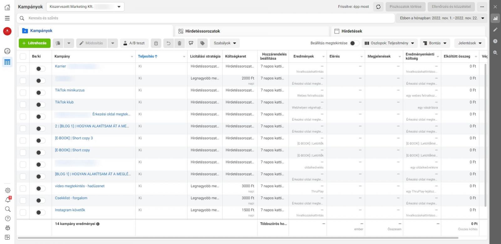 Teljesítménykövetés: a marketing ügynökségek nyomon követik a Facebook hirdetési kampányok teljesítményét és elemzik az eredményeket, hogy optimalizálják a kampányokat.