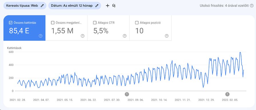 Tartalommarketing segítségével felépítettünk egy jogi tanácsadással foglalkozó weboldalt, ami az elmúlt egy évben több, mint 1,5 milliószor jelent meg a kereső találati listáin és összesen 85 ezer látogatót vonzott organikus forrásból: