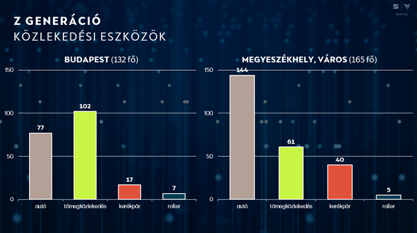 A fiatalok jellemzően autóval közlekednek, vagy a tömegközlekedési eszközöket választják, hogy eljussanak A-ból B pontba. Ebben eddig nincs is semmi meglepő, ahogy talán abban sem, hogy a budapestiek nagyobb arányban használják a tömegközlekedést, a vidékiek pedig inkább autóznak városon belül is, vagy gyalogolnak, hiszen a közlekedési infrastruktúra valószínűleg kevésbé kiépített, mint a fővárosban.