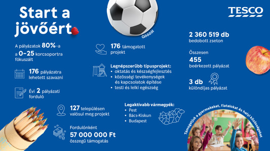 Tavaly októberben indította útjára a Magyar Marketing Szövetség vállalati tagja, a Tesco „Start a jövőért” elnevezésű pályázati programját, amely az áruházlánc nyolc éven át sikerrel futó „Ön választ, mi segítünk” programját váltotta fel. A közösségi kezdeményezés célja, hogy támogatást biztosítson szerte az országban olyan intézmények, illetve szervezetek számára, amelyek főként a közvetlen környezetükben élő 25 év alattiak életkörülményeit szeretnék javítani. A korábbi támogatási programhoz hasonlóan a Tesco ezúttal is a vásárlói kezébe adta a döntést a saját környékükön megvalósuló projektek számára biztosított finanszírozás szétosztásáról.