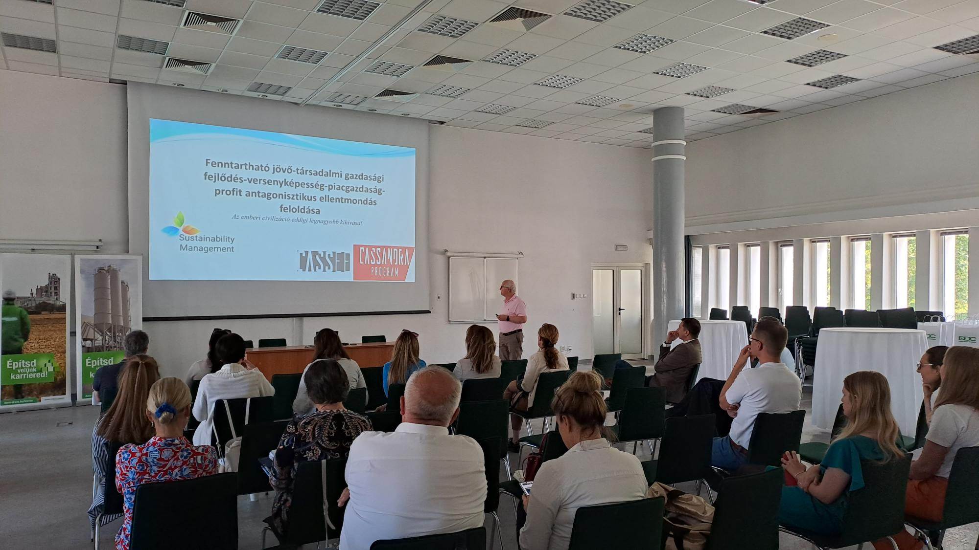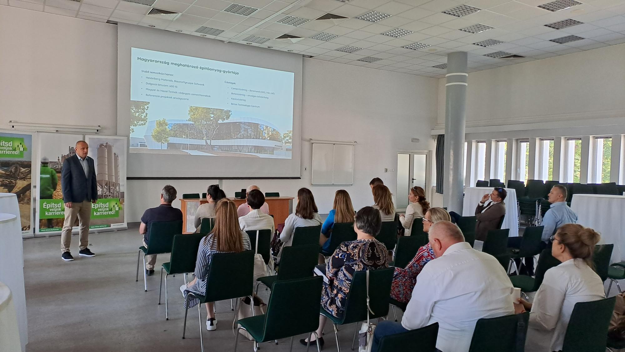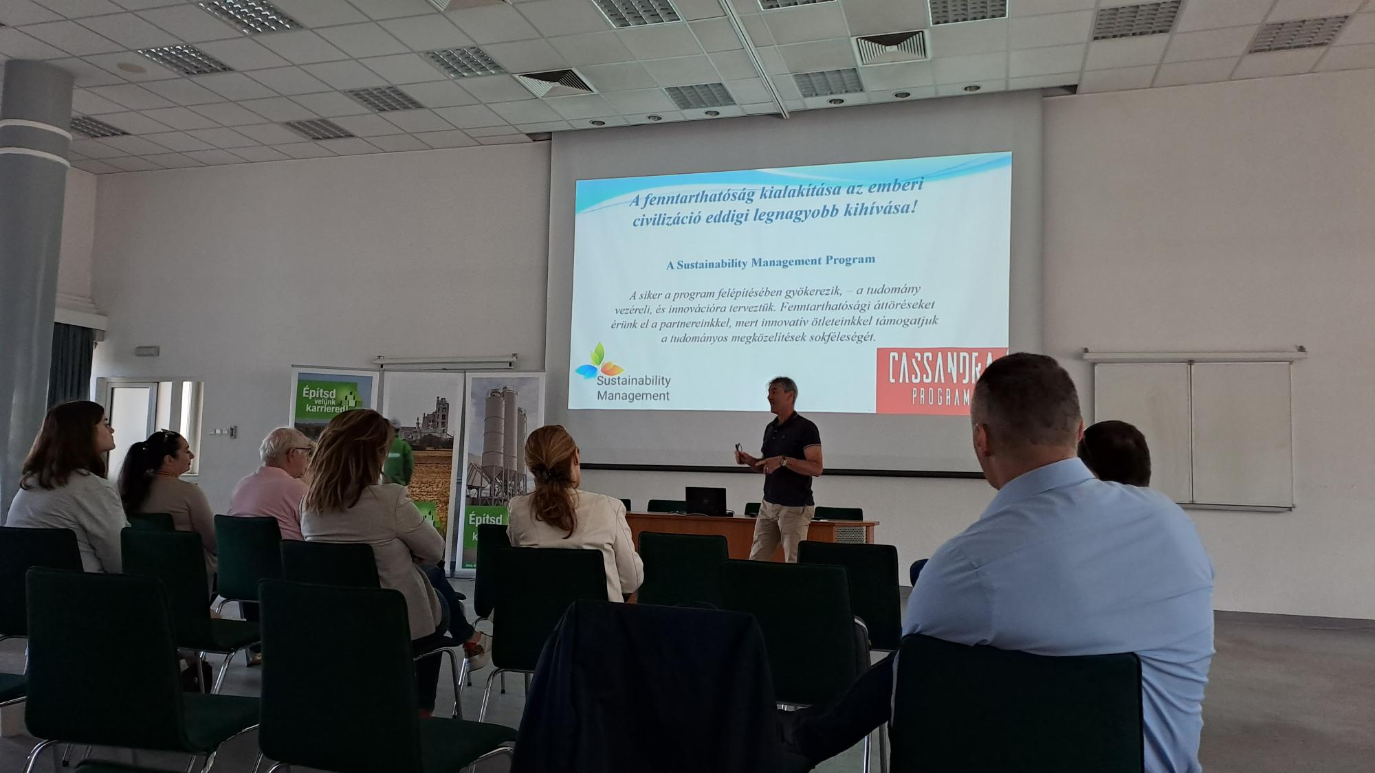 Ezt követően a fenntarthatósággal és klímaváltozással kapcsolatos szakmai előadásokat hallgattak meg a résztvevők Dr. Hunyadi Mátyás okl. humán-ökológus és Fazekas Endre okl. élelmiszeripari mérnök-közgazdász előadásában, majd a résztvevők betekintést nyertek a Sejcei Mészkőbánya és a Váci Cementgyár működésébe. A rendezvény állófogadás keretében kötetlen beszélgetéssel zárult.